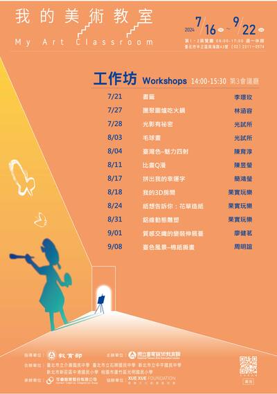 3、 展覽期間於週六、週日舉辦12堂工作坊及預約導覽,以串連各年齡階層學習族群。工作坊採線上報名,相關規定與費用如下: