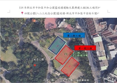 本所於114年06月25日開始進行「114年新北市中和區中和公園籃球場運動天幕興建工程」,有關籃球場地坪改善工程將分兩期施作,施工順序為「中間及靠槌球區之地坪將先行施作」,「靠823廣場之地坪後施作」,現在第一期工程即將完成,預計於10月15日前即可開放民眾使用,特此告知。